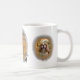 Two custom photos and your dog's name come together in this pastel orange watercolor mug. A subtle breed silhouette accents the verse: 'Warm sun dances upon gentle eyes and noble hearts', creating a peaceful gift for pet parents.