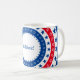 Celebrar eventos de férias americanos com estrelas festivas e listras em círculos patrióticos de vermelho, branco e azul. Adicione seu próprio texto ao centro para canecas de café personalizadas perfeitas para as celebrações do Dia 4 de julho, piquenique do Dia Memorial, festas de veteranos e muito mais. ♡ Idyllfire