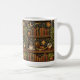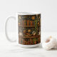 A cozy retro-inspired design featuring a charming celestial bookshelf filled with vintage books, delicate botanical accents, cosmic design elements and a comforting cup of tea or coffee.