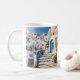 Uma ilustração digital de uma cena de Santorini, Grécia.
