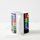 O design de caneca de café que diz "Chandler" é preto e colorido com tinta vermelha, amarela, verde, azul e branca. Ele o torna ideal para café ou chá de manhã. É seguro para micro-ondas e lava-louças.