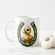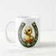 Desfrute um pouco de amuleto irlandês com seu café matinal! Esta maravilhosa caneca apresenta um patinho giro sentado sobre uma ferradura decorada com intrincadas designs Celtas. Uma Rua perfeita. Um presente de Patrick ou uma adição sortuda à sua coleção de bebidas