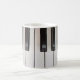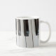 Esta caneca de café tem uma imagem de teclas de piano nela.