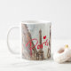 Esta caneca de café usa uma pintura em forma de aquarela da icônica Torre Eiffel, vista através de uma rua lateral. A palavra "Paris" em vermelho brilhante com um coração adiciona um toque elegante e moderno - você pode facilmente redimensionar, apagar, mudar a cor ou mover este texto ao redor, se desejado.