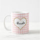 Caneca De Café Chic Script Girly Pink White Gingham Nome Personal