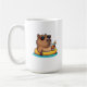Esta é uma ilustração engraçada e leve de uma capybara desfrutando um dia relaxante. A capybara está vestindo óculos de sol legal e flutuando em uma piscina em um tubo interno amarelo, segurando uma bebida tropical com um pequeno guarda-chuva. O estilo artístico é um desenho animado limpo e moderno. A vibração geral é calma, feliz e um pouco preguiçosa — perfeita para temas de verão ou férias.