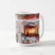 A beautiful fireplace decorated for the holidays brings a touch of elegance to this designer mug