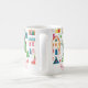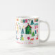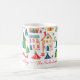 Festive, colorful little Christmas houses decorate this yuletide coffee mug, all the way around. Cute homes in the white snow are intermixed with star-topped decorated trees in this fun wintry scene. The watercolor pattern is of a popular retro origin. You can edit the "Happy Holidays" greeting as well as the other text. Be sure to edit the names and date.