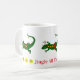 Enjoy your favorite holiday beverages in this festive Christmas mug featuring three lizards ready to pull a tiny sleigh. Caption on mug: Jingle All The Way!