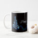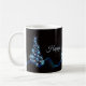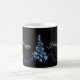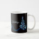 Christmas Party Blue Tree Shiny Black Elegant Coffee Mug. Unique, beautiful, stylish design. Easy to be personalized. Font style, size and colors can be changed. Matching items are available.