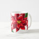 A caneca de café cerâmica é mostrada com um belo impressão de poinsetos vermelhos de Natal. Personalize este item ou comprar como está.