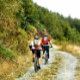 Dos hombres en bicicleta de montaña en las colinas de Gales.