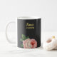 Caneca De Café Cinza de nome personalizado de flor rosa