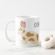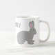 Esta caneca de café divertida é perfeita para os donos de coelhos. Apresenta uma ilustração de um coelho creme colorido com manchas castanhas claras num lado e um coelho cinza no outro lado com o seu nome ou outra mensagem curta no meio.