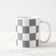 Cinzas de prados checados e canecas de café com retro geométrico branco para beber, presentes para ela. Legal padrão quadrado geométrico verificado por retrô. Cinza de azulejo e verificador moderno branco.