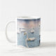 Caneca De Café Cisne branco-mudo num lago. Pintel de aquarela
