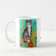 Uma linda caneca de café para amantes de gatos. Gato colorido, gatinho e flores, estilo de arte popular, gerada por IA com trabalho de arte.