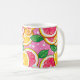 Esta caneca clássica apresenta um vibrante design cítrico com fatias brilhantes de toranja, limão e laranja dispostas contra um fundo rosa divertido com bolinhas brancas. Folhas verdes frescas adicionam um contraste animado, criando uma composição alegre e ensolarada que ilumina instantaneamente qualquer cozinha ou espaço de trabalho. Perfeita para café da manhã, chá ou bebidas noturnas aconchegantes, esta caneca combina praticidade cotidiana com uma estética divertida e edificante. Sua ousada arte frutada traz um surto de cor e alegria a cada gole.