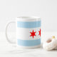 Esta design apresenta a bandeira civil de Chicago, que consiste em dois bares horizontais azuis-claros, ou faixas, sobre um fundo branco. A cidade de Chicago é a cidade mais populosa do estado de Illinois nos Estados Unidos, e uma das cidades mais populosas em todos os Estados Unidos; é também a cidade mais populosa no meio oeste dos Estados Unidos. Chicago é a sede do Condado de Cook. Chicago é conhecida como "Cidade Vergonha".