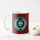 Caneca de café com tartan para Clan Scott e suas sebes, incluindo Laidlaw, uma xadrez tradicional escocesa em vermelho vivo e verde de caçador. Padrão de safra de 1829. Ambos os lados da caneca apresentam o seu monograma inicial em um antigo inglês dentro a round hunter green crachá com louros.