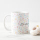 Fundo com padrão colorido de Páscoa e inicial grande com a mensagem "Bênçãos de Páscoa" nesta caneca de café clássica de 11oz. Há espaço amplo para adicionar duas iniciais de monograma adicionais. Altere facilmente a inicial e o texto usando o modelo fornecido. Grande capacidade para bebidas quentes ou frias. Também disponível em 15oz e outros estilos de caneca. Veja "Sobre Este Produto" ao lado para informações adicionais.