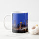Perto do rio... Cleveland, Ohio, brilha em uma caneca de cerâmica resistente, apresentando um horizonte noturno. Ideal para aqueles que apreciam a visão em Cleveland, ou que a perdem carinhosamente de longe!