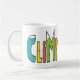 Climb is a hand drawn design featuring large letters with icy peaks, and stickman climbers attempting to reach the top. For climbing fans with a sense of fun.