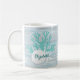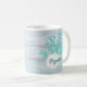 Personalize esta praia costeira com o tema da caneca para você mesmo ou um presente. A design apresenta um dólar de areia branco e dois estrelas-do-mar com ramal de coral com brilho de haqua, em um fundo rústico de madeira derivada. *Se você precisar de ajuda de design ou quiser mais produtos compatíveis, entre em contato comigo através do Zazzle.