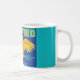 Etiqueta de fruta de colheita de excelente da Califórnia reposta numa caneca de café.