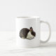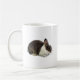 Um coelho holandês marrom e branco, historicamente conhecido como Hollander ou Brabander, é mostrado com os ouvidos erguidos sobre um fundo escuro, destacando seu pelo macio e sua expressão atenta. A composição enfatiza o contraste entre o pelo claro e escuro do coelho.