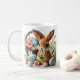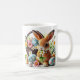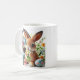 Uma foto fofa do coelho de Páscoa entre flores e ovos