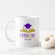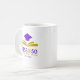 Caneca branca de café cerâmico com alça grande e logotipo FESS @ 50 frente e trás.