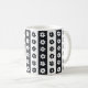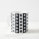 A caneca de café cerâmica é mostrada com um impressão de arte giro preto e branco. Personalize este item e altere o nome do exemplo para o seu. Imagem do stock