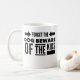 A caneca é de excelente qualidade, de bom peso e aparenta resistentência. O tamanho grande da caneca de 444 ml é muito prático, ela serve até para sobremesas. A alça é do tamanho certo para empunhadura, e oferece grande firmeza. A impressão ficou perfeita, a imagem ficou completamente nítida, e as cores vivas como na imagem do site.