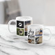 Crie um doce presente personalizado para uma mãe de cão adoradora com esta caneca de colagem fofa fofa fofa. Design apresenta "mãe de cão" em tipografia escrita a preto com 7 fotos de seus bebês e um sotaque de impressão digital. Personalize com o nome do cão e/ou uma mensagem pessoal em letras brancas a preto para completar o design.