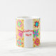 A arte quilt baseada na arte original apresenta blocos de retalhos favoritos e blocos únicos criados por Phyllis Dobbs em cores vibrantes e dinâmicas. Mostre o seu amor por colar com estas designs enquanto bebendo a sua bebida favorita nesta caneca. Totalmente personalizável.