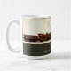 Caneca de comboio de alta velocidade com modelo de comboio e linha engraçada para coletores de comboios e entusiastas da ferrovia, com locomotivas e a menção: Coo-coo para sopros de Choo-choo. Editar texto para adicionar nome.