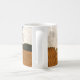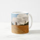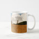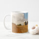 Esta caneca de fotografia de arte apresenta uma bela paisagem rural. É o outono e a colheita de cereais está em curso. No ouro em primeiro plano, as linhas amarelas e castanhas são parcialmente cortadas. Olhando sobre a colina estão as fazendas com seus silos. Nuvens brancas puras e um céu azul completam a composição.