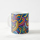 A bold and energetic mug design filled with vibrant abstract curves and playful flowing lines. The rich mix of bright colors on a deep background creates a joyful rhythm, perfect for creative minds and lovers of modern art-inspired drinkware.