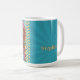 Celebrate everyday moments with this vibrant and artistic floral coffee mug. It features a high-contrast mix of whimsical hand-painted flowers set against a striking teal sunburst background. This eye-catching piece makes a thoughtful personalized gift for a friend, colleague, or teacher who loves bold botanical style.