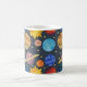 A bright, playful pattern featuring watercolor planets and stars on a dark background. Made to feel fun and full of cosmic energy.