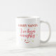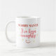 Caneca de café com citação de Natal! A citação é "DESCULPE PAPAI NOEL Eu estive malvado" em tons de tipografia moderna rosa e vermelha com enfeites dourados e um rosto sorridente piscando.