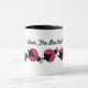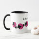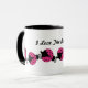 Caneca de café divertida rosa e preta "Eu amo os besouros" joaninha rosa.