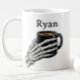 Caneca personalizada com uma mão esquelética segurando uma xícara de café, com um nome personalizado impresso acima da ilustração. Uma piada interna simples da cultura de imagem e um presente de apreciação divertido para a equipe de radiologia e radiografia, incluindo radiografos, radiologistas e qualquer pessoa que trabalhe em um departamento de radiologia. A ilustração esquelética também lhe dá um toque sutil de Halloween ou clima assustador, tornando-o um presente divertido além do local de trabalho.