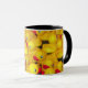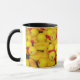 Caneca de café com padrão de pato de borracha amarelo.