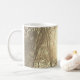 Sol brilhando pela manhã entre árvores, feliz caneca de café da manhã. Moderno e elegante, chegando à natureza.