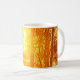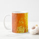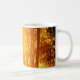 Sol brilhando pela manhã entre árvores, feliz caneca de café da manhã. Moderno e elegante, chegando à natureza.