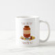 Mug com um design ilustrado de um boião sorridente de manteiga de amendoim que está entre duas pilhas de amendoins. As palavras "Manteiga de amendoim"? "Peanut Melhor!" mostre acima e abaixo do personagem de desenho animado. Todas as palavras podem ser personalizadas.
