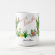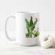 Adicione uma explosão de fôlego tropical ao seu café com esta vibrante caneca de café com plantas tropicais exuberantes, flores coloridas, flamingos, aves exóticas e uma bebida refrescante. Um sinal de neon que diz "e respirar" acrescenta um toque lúdico e moderno à design. Perfeito para a conclusão do projeto, celebrações, ou qualquer ocasião que exija uma vibração animada e alegre, esta caneca traz a essência do paraíso para a sua dádiva.