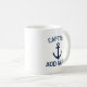 Caneca de café conhecida da âncora do marinho do capitão feito sob encomenda do barco. O copo personalizado do marinheiro para o chá, o café e o outro bebe. Acessórios náuticos com cores dos azuis marinhos e do branco. Adicione suas próprias letras iniciais do nome ou do monograma. Ideia do presente marítimo do aniversário ou do dia dos pais para os homens que amam a navigação/barco no mar do lago ou do oceano. Faça seus próprios para o pai do capitão, o pai, o vovô, o avô, o tio, o marido, o filho, o amigo, o padrasto, o stepdad, o amigo, o trabalhador do co, o chefe, a tipografia viril do vintage do empregado etc. com design do logotipo da âncora do navio. Drinkware 11oz customizável para a casa ou o escritório. Também agradável como o presente para membros de grupo do navio de cruzeiros e do veleiro. O dobro tomou partido impressão.